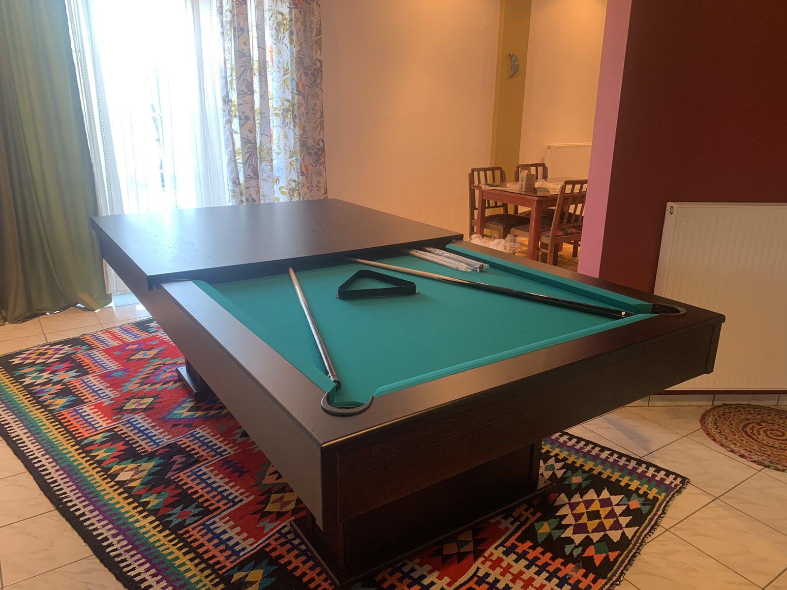 Υπάρχει η δυνατότητα προσθήκης ξύλινου καπακιού που μετατρέπει το μπιλιάρδο σε τραπέζι τραπεζαρίας. Ιδανική λύση για σπίτια όπου ο χώρος είναι πολλαπλής χρήσης.